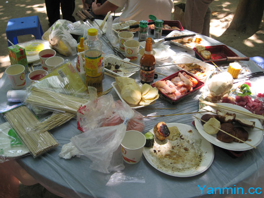 森林公园自主烧烤,还真是平生第一次,吃什么到无所谓,关键是自己亲手打造,所以,无论吃什么,都很好吃。比起每天下班后在外面小餐馆吃的那些东西,简直是天上地下。